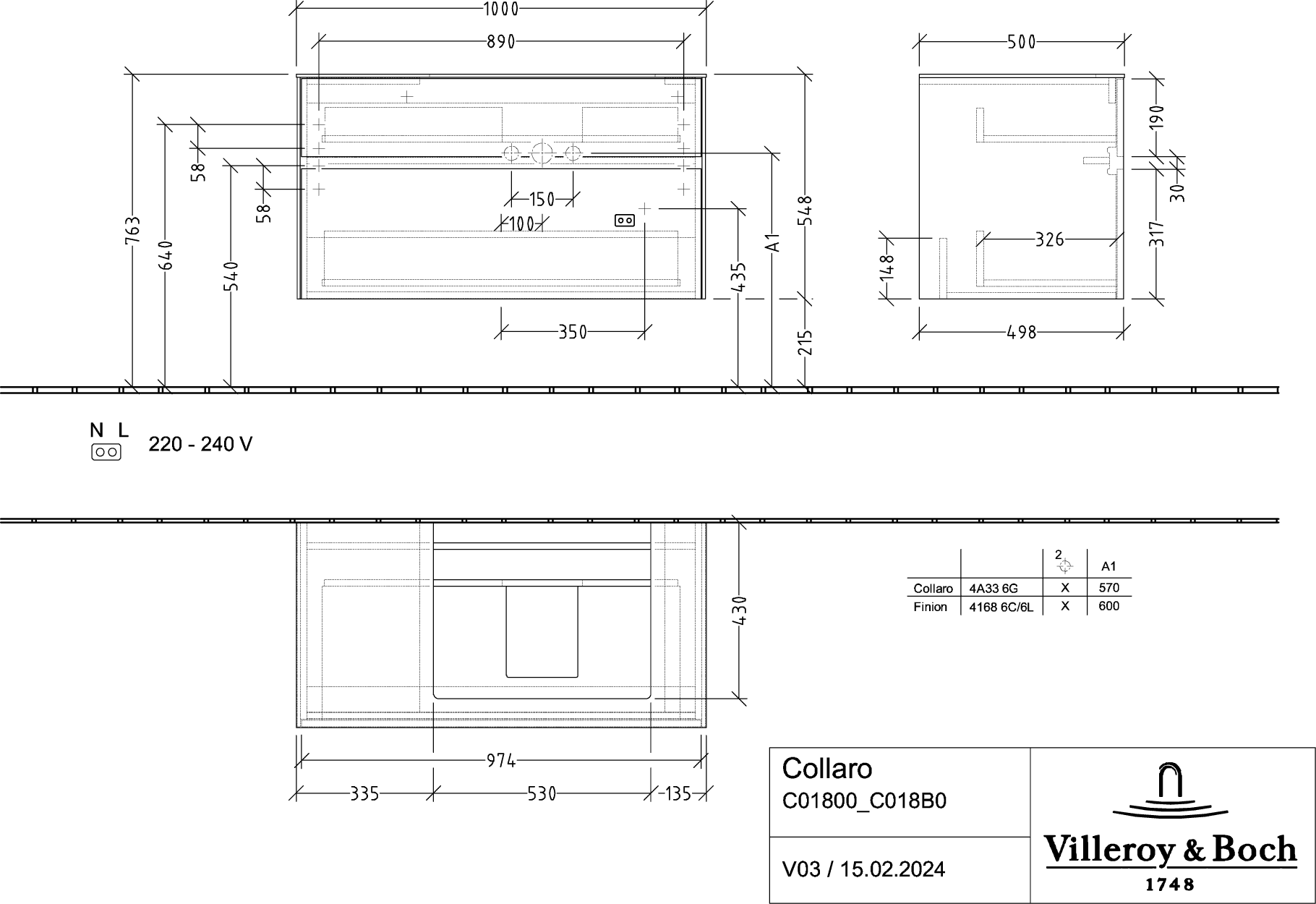 Collaro Wastafelonderkast 1000x548x500mm C018B0MS Villeroy & Boch