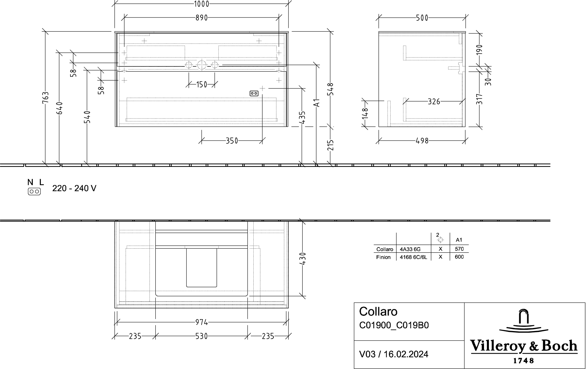 Collaro Wastafelonderkast 1000x548x500mm C019B0DH Villeroy & Boch