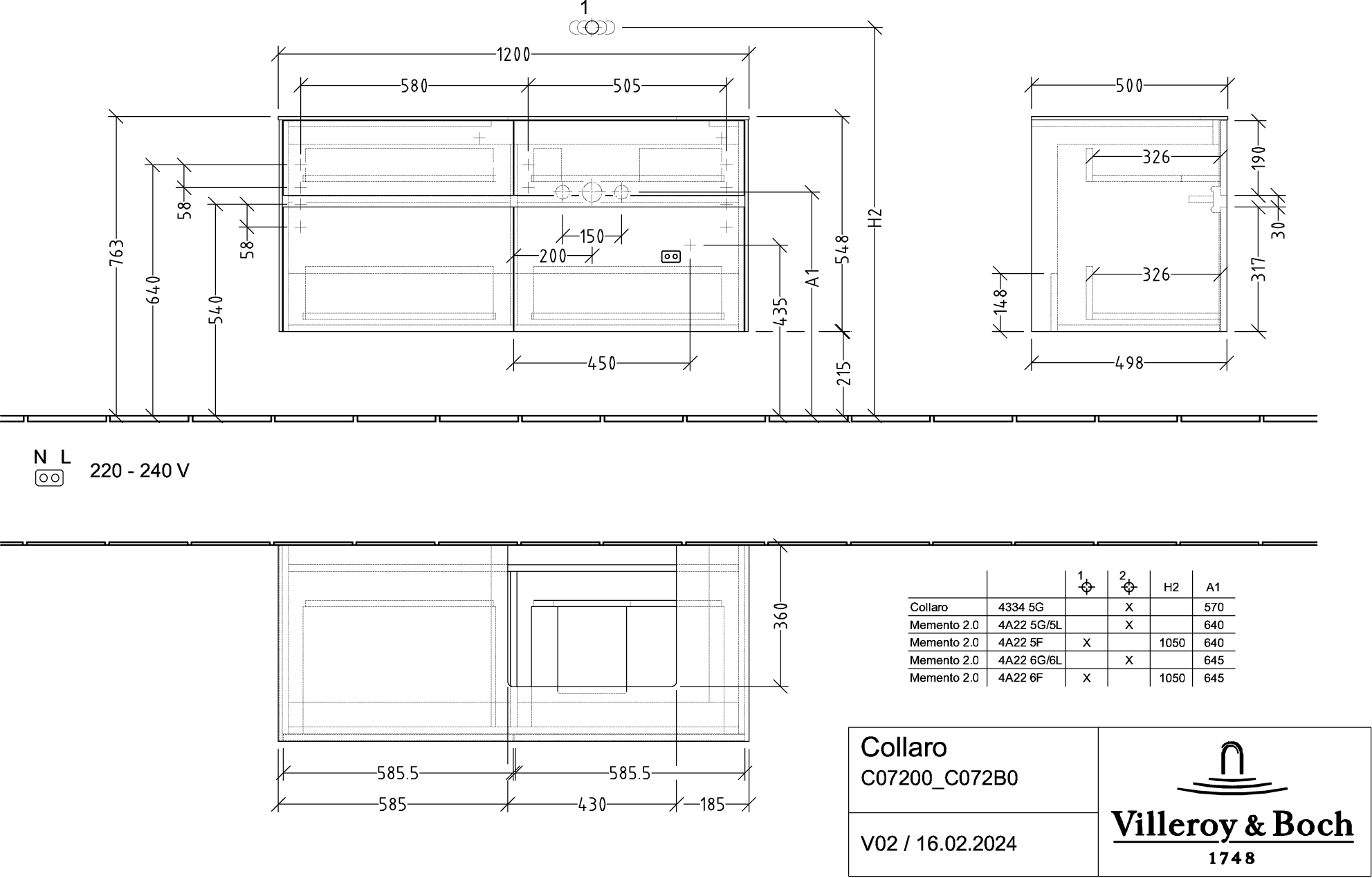 Collaro Wastafelonderkast 1200x548x500mm C07200FP Villeroy & Boch