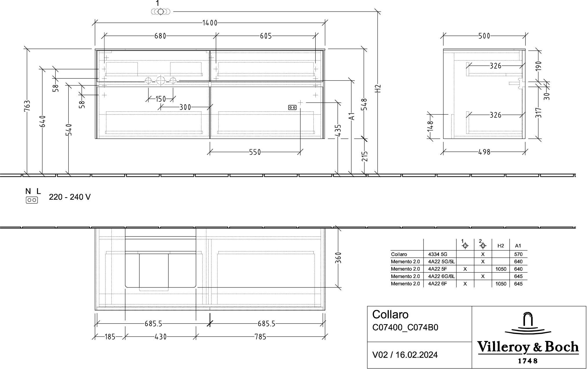 Collaro Wastafelonderkast 1400x548x500mm C07400MS Villeroy & Boch