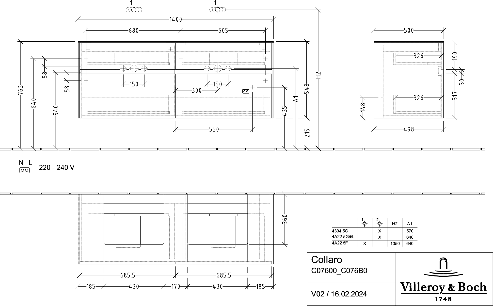 Collaro Wastafelonderkast 1400x548x500mm C07600MS Villeroy & Boch