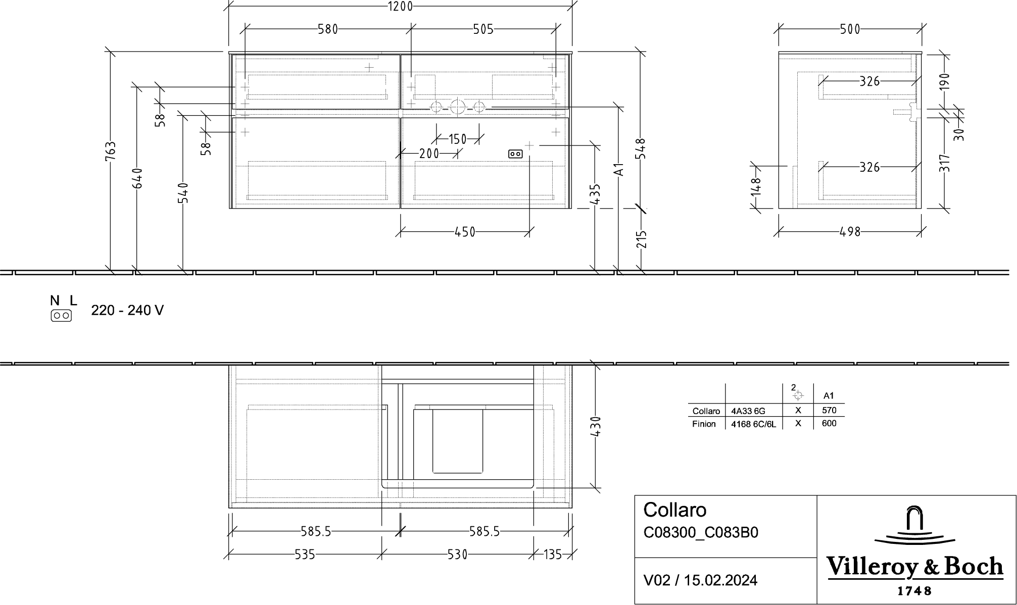 Collaro Wastafelonderkast 1200x548x500mm C08300VJ Villeroy & Boch