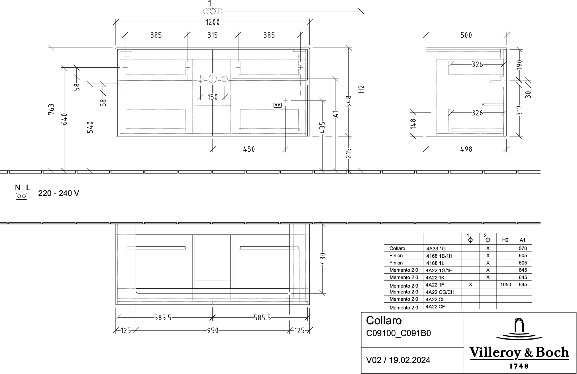 Collaro Wastafelonderkast 1200x548x500mm C09100FP Villeroy & Boch