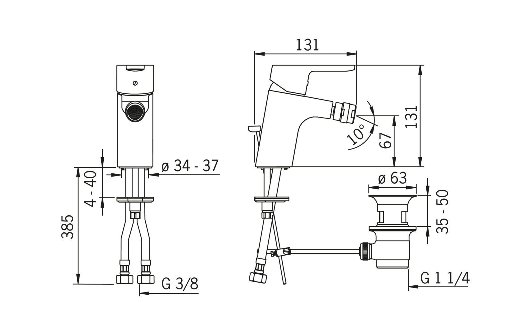 Primo bidetmengkraan vaste uitloop met waste 3/8flex topbed. HANSA
