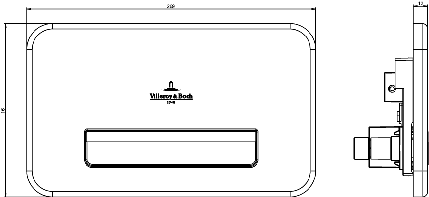 WC-bedieningspl ViConnect 269x161x13mm Stainl.steel 922311LC Villeroy & Boch