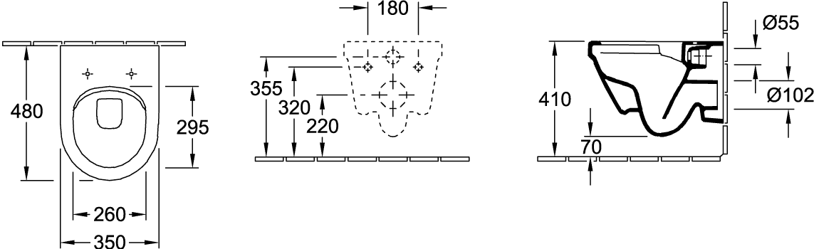 - Hartmaat bevestiging wandcloset: 180 mm