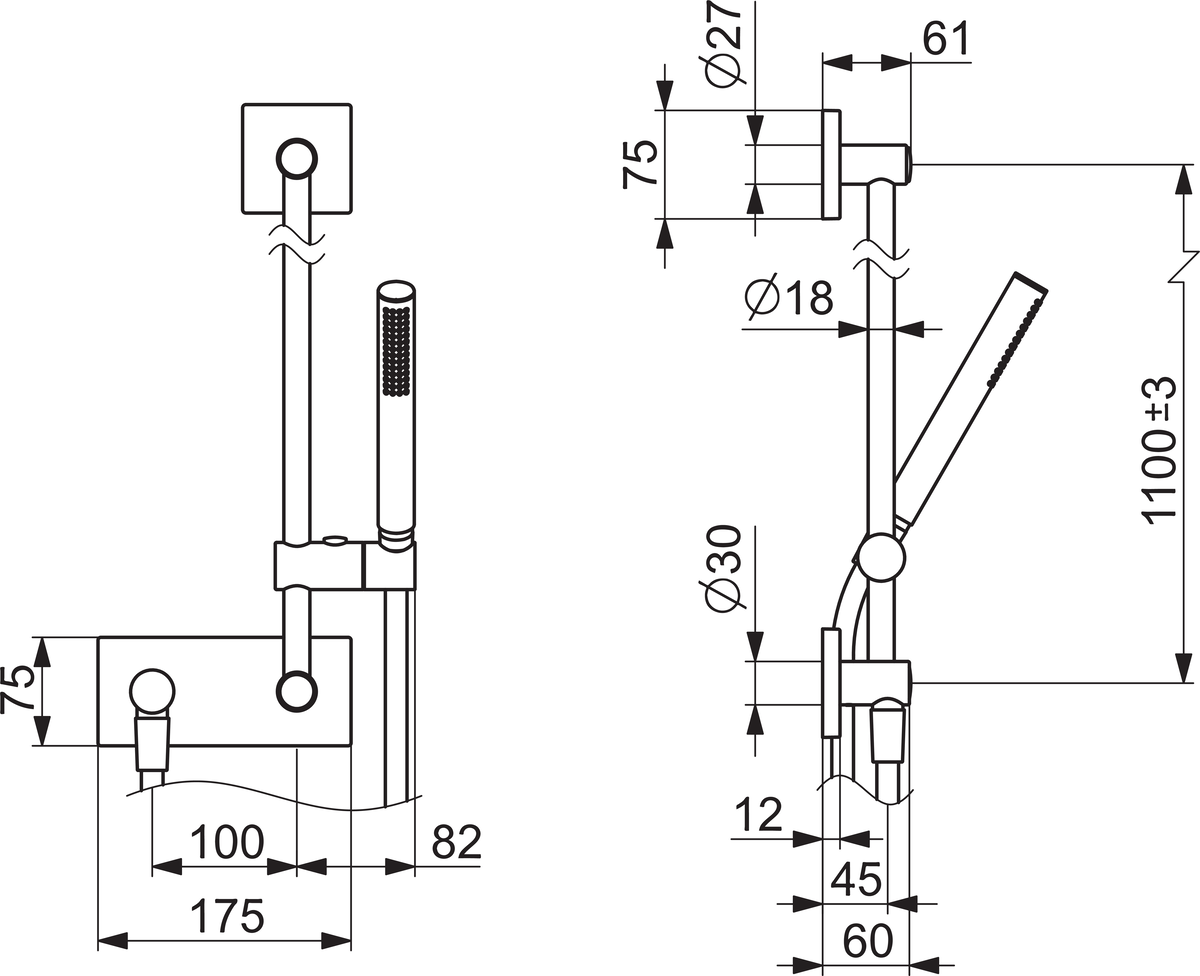 Matrix doucheset 1100mm chroom m.wandaansl.bocht HANSA