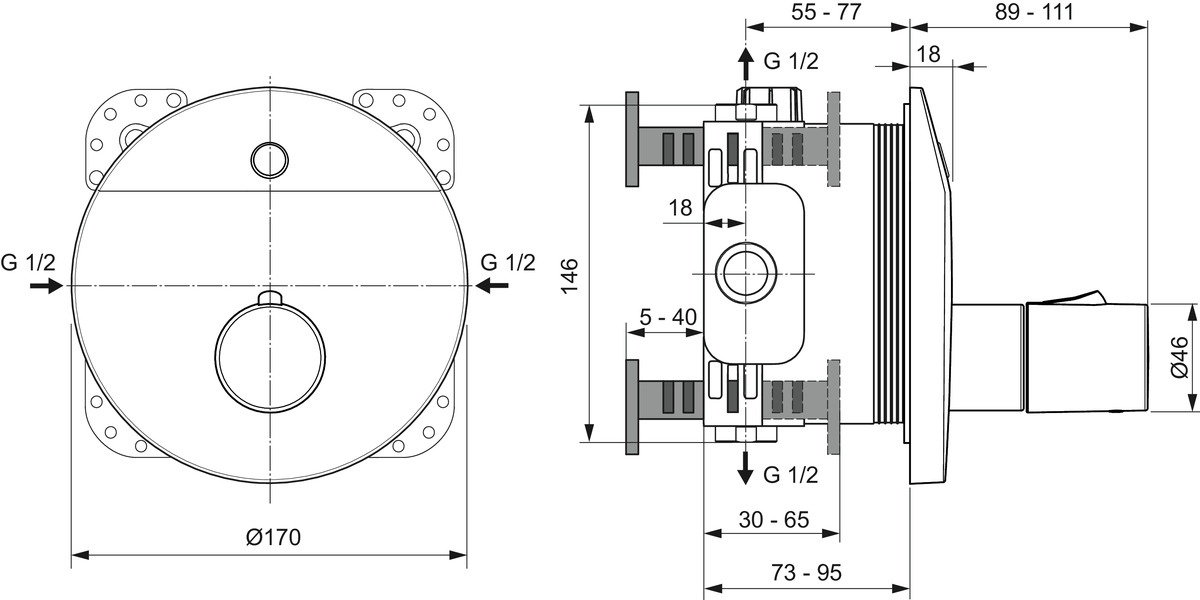 - Inbouwdiepte: 73 - 95 mm