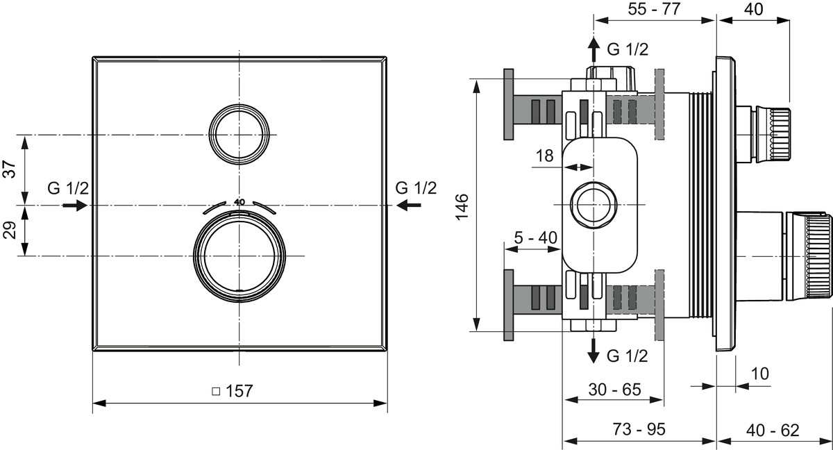 - Type: Douchethermostaat (opbouwdeel)