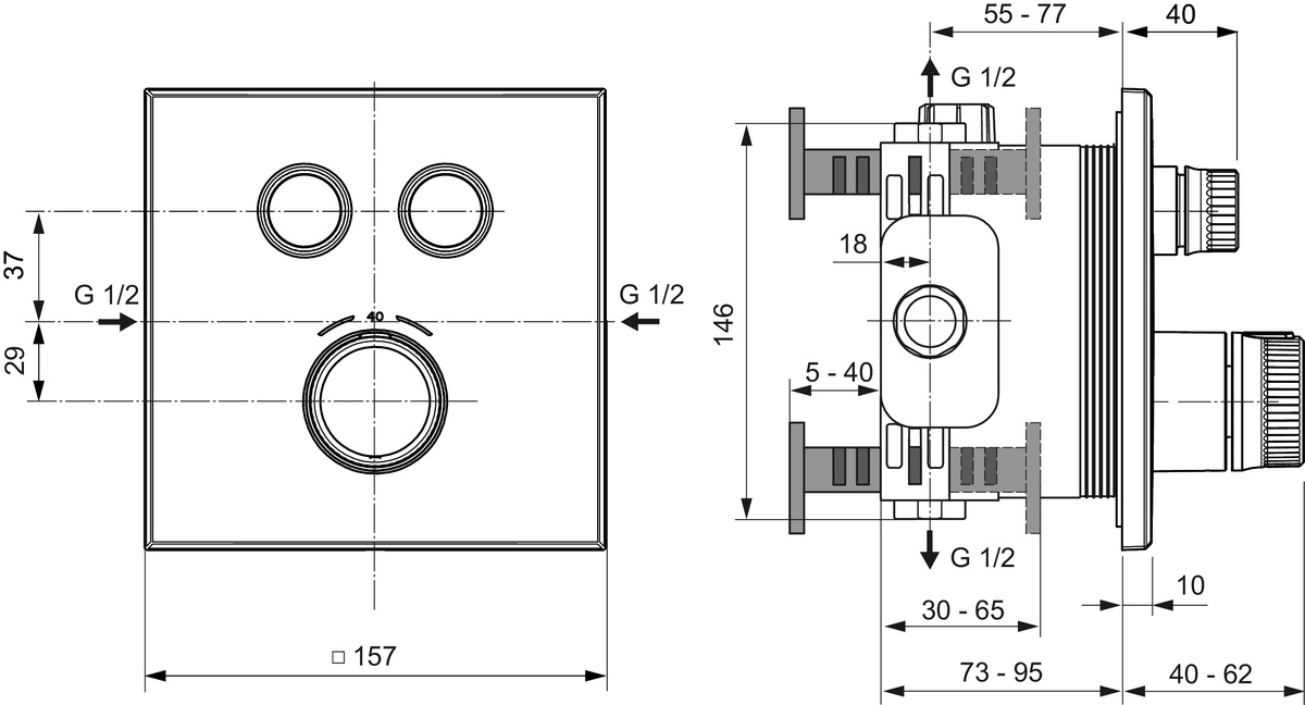 • Inbouwdiepte: 73 - 95 mm