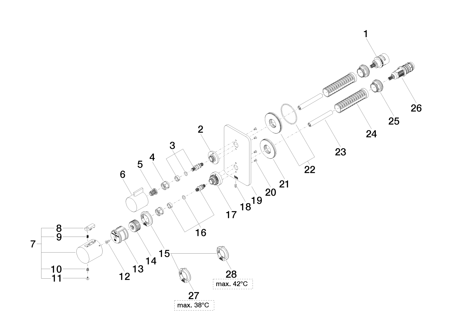 • Met terugverende weerstand voor max. warmwatertemperatuur: Ja