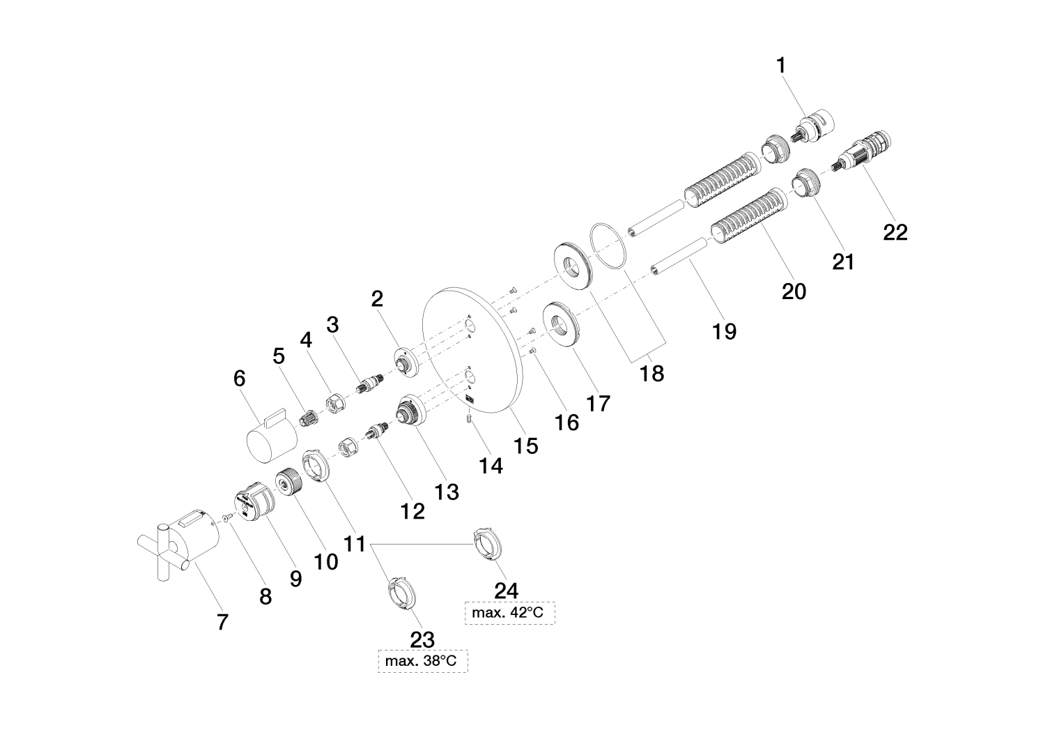 - Met terugverende weerstand voor max. warmwatertemperatuur: Ja