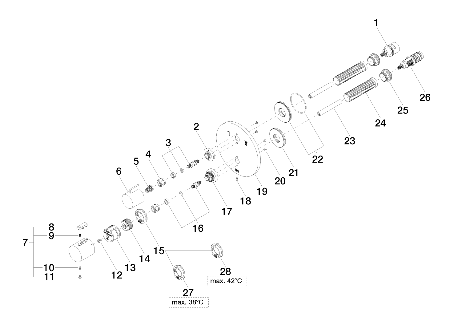 - Met terugverende weerstand voor max. warmwatertemperatuur: Ja