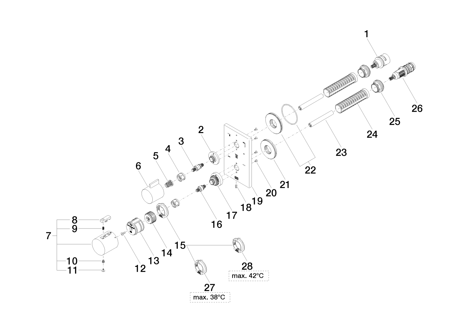 - Met terugverende weerstand voor max. warmwatertemperatuur: Ja