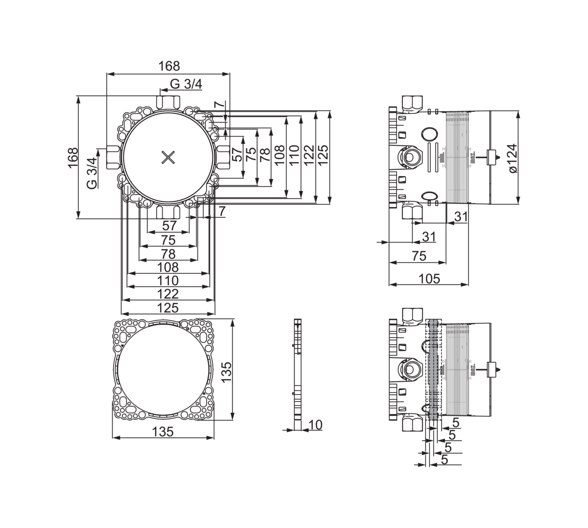 Basis inbouwdeel wand 3/4" 90°C. HANSABLUEBOX HANSA