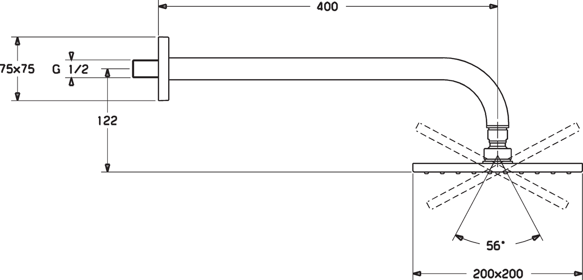 Hoofddouche vast m douchearm sprong 400mm 200x200mmHANSAVIVA HANSA