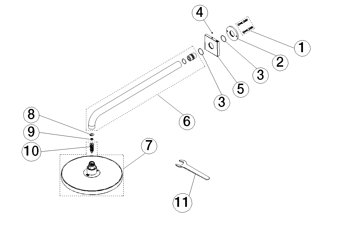 Regendouche+wandbev 220mm-LG gebor Dornbracht