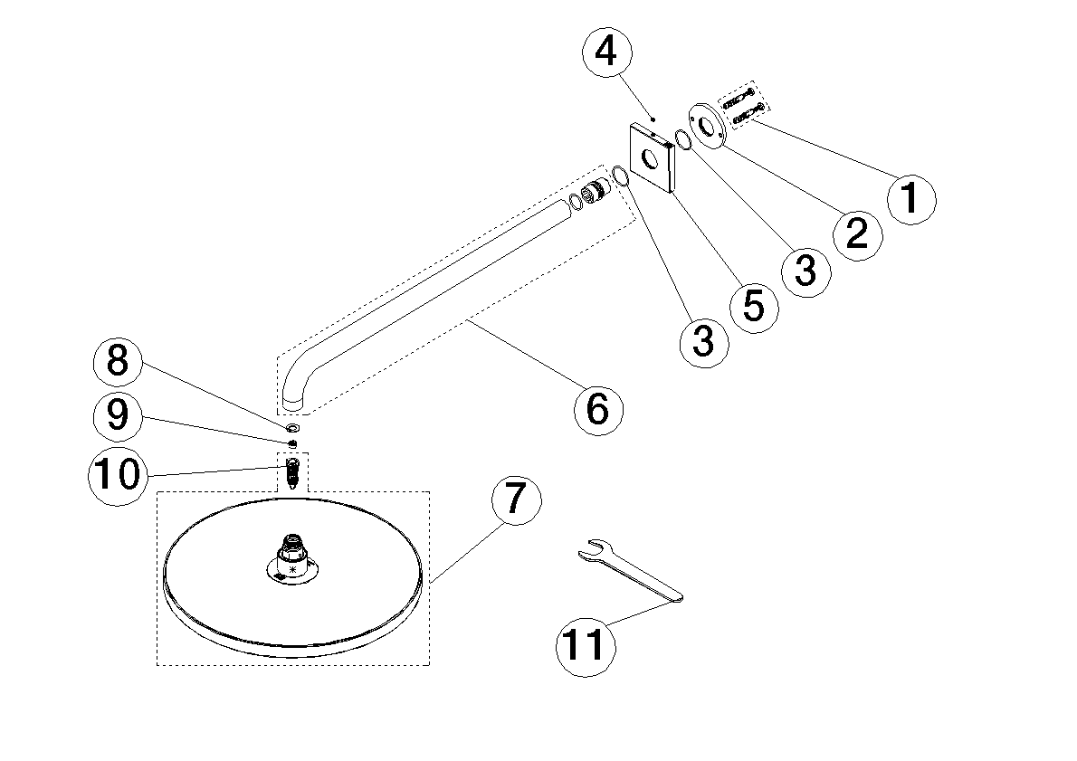 SERIE OVERK. Regend.+wandbev FlowRed 300mm-LG gebor Dornbracht