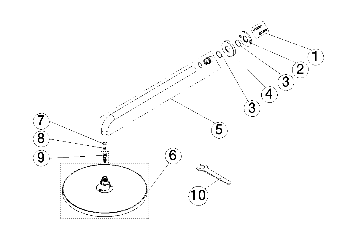 SERIE OVERK. Regendouche+wandbev 300mm-DP gebor Dornbracht