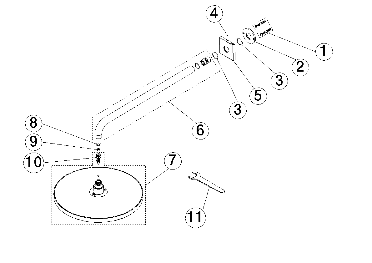 SERIE OVERK. Regendouche+wandbev 300mm-Mat Zwart Dornbracht