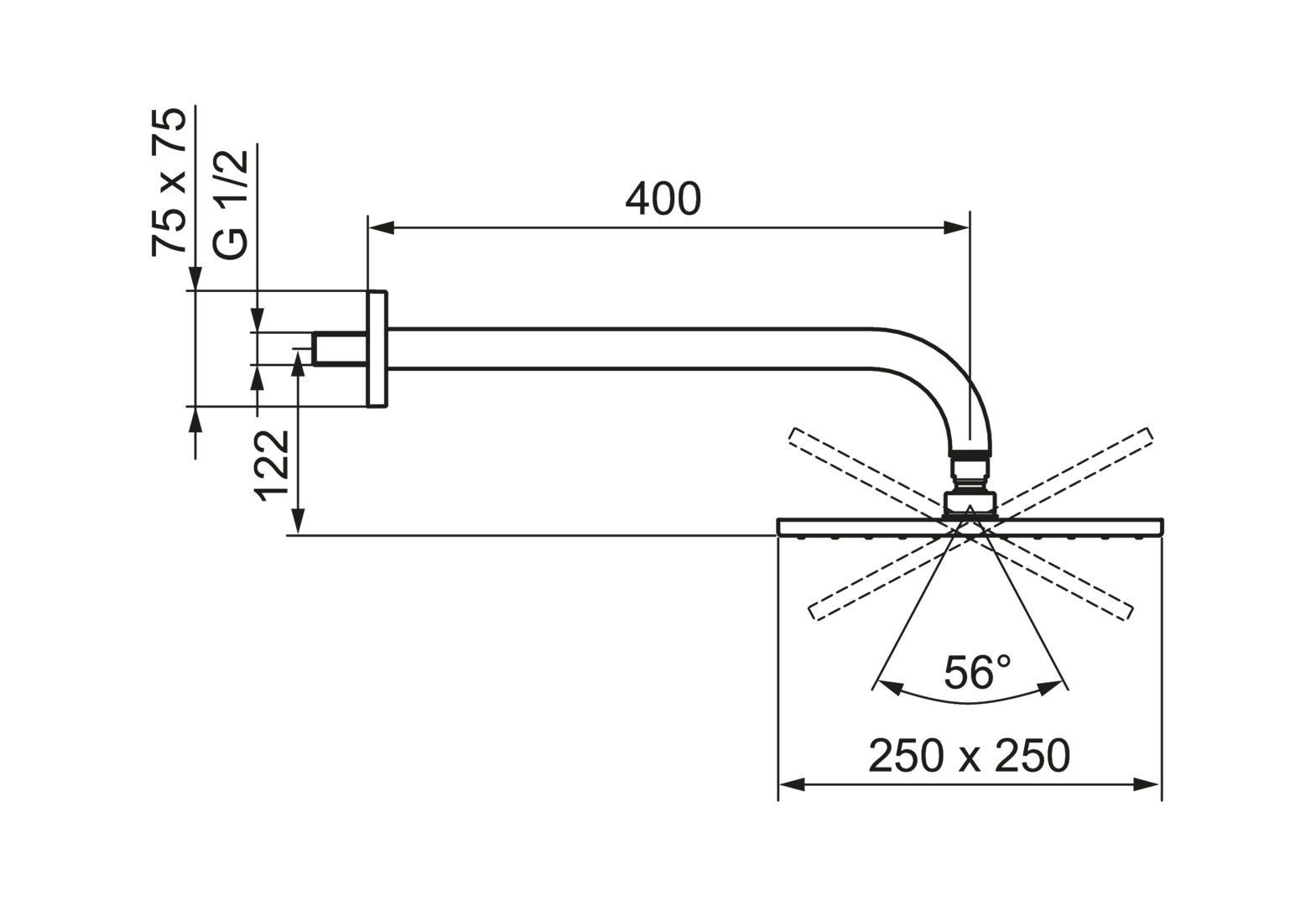 Matrix vaste hoofddouche 250mm spr.400mm chroom m.douchearm HANSA