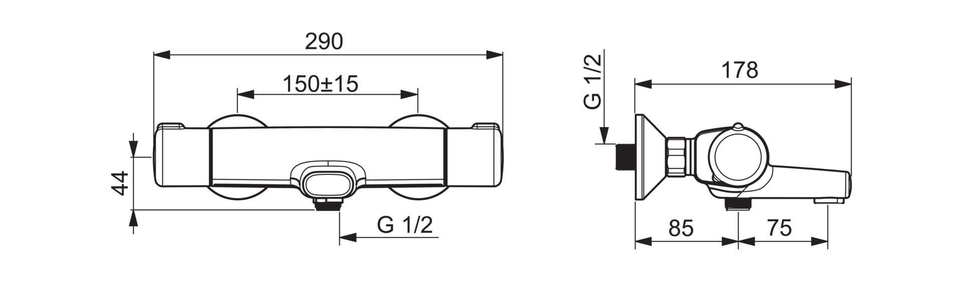• Maat aansluiting aanvoer: 1/2" (15)