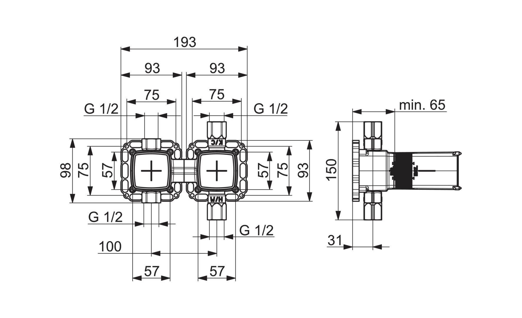 Matrix wand inbouwdeel omstelling chroom HANSA