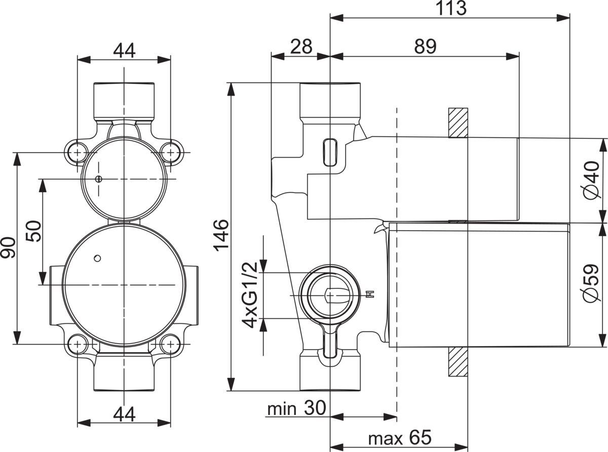 Inbouwdeel eengreepsmengkraan 3.5 met omstelling HANSAVARIO HANSA
