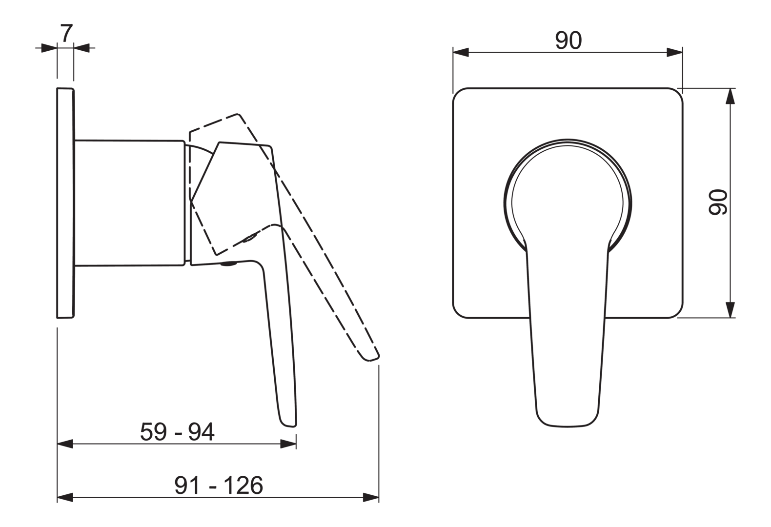 Afbouwset hendelmngkraan zonder omstel. kleine rozet 95x95mm HANSAPOLO HANSA