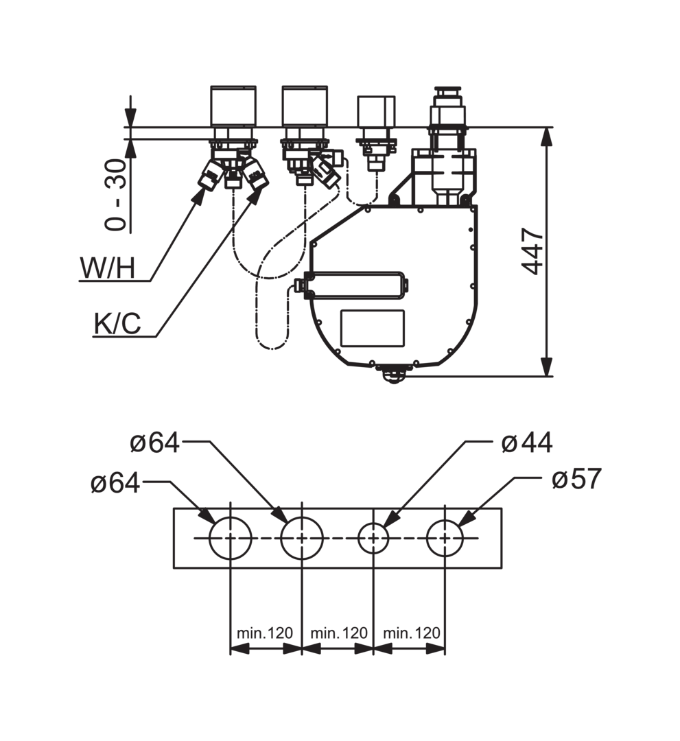 4-gats inbouwdeel badrandsysteem HANSACOMPACT HANSA