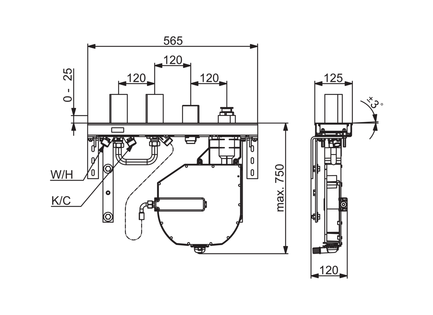 4gat inbouwdeel badrandsyst v. tegelrandmontage HANSACOMPACT HANSA