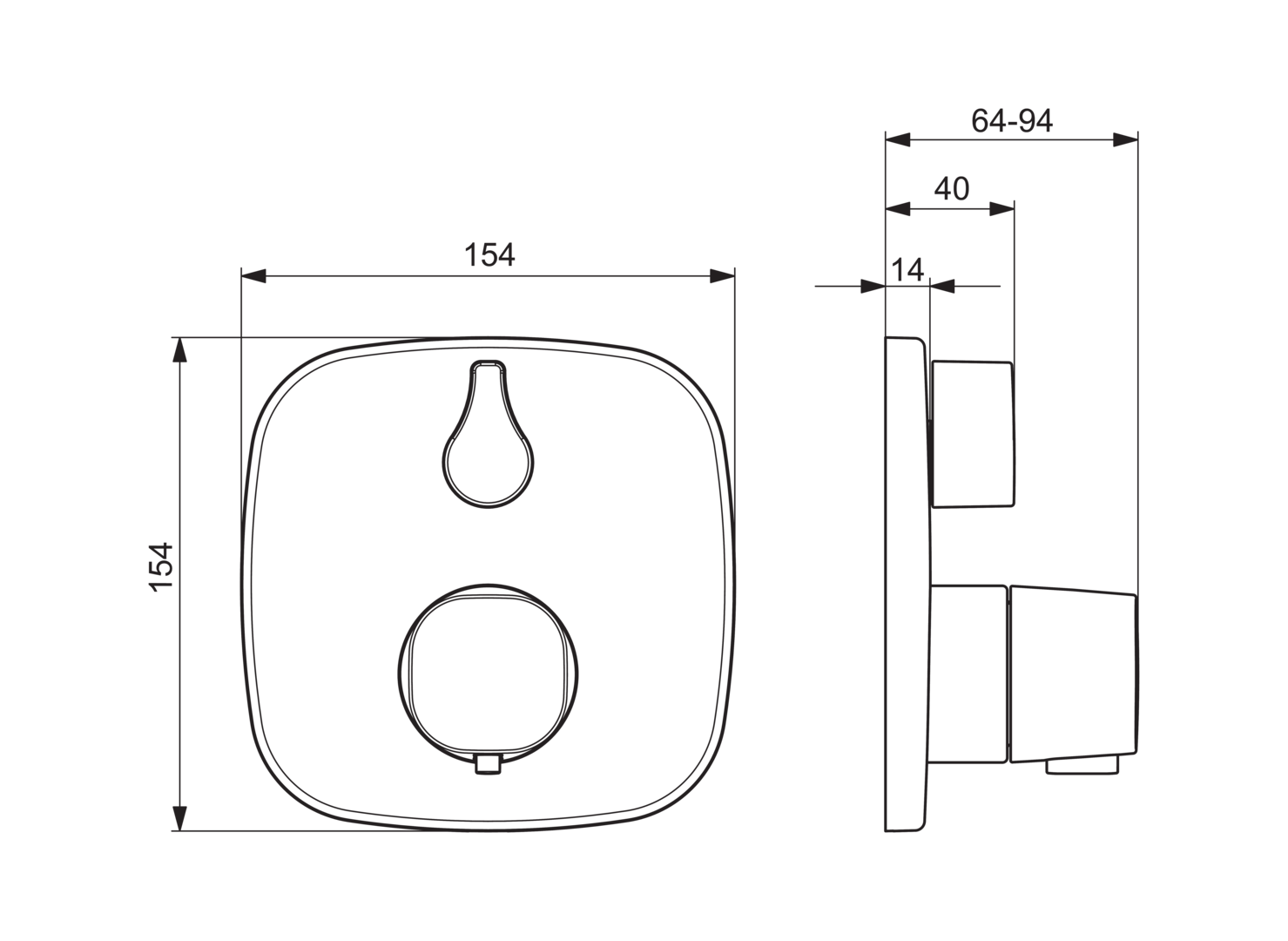 Afbouwset thermos 4-kant afgeronde rozet HANSALIVING BLUEBOX HANSA
