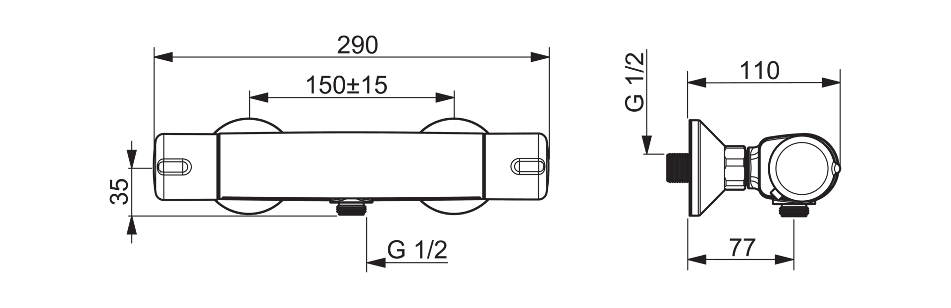 Douchetherm. HANSAMICRA chroom 150mm v. omgekeerde leidingen HANSA
