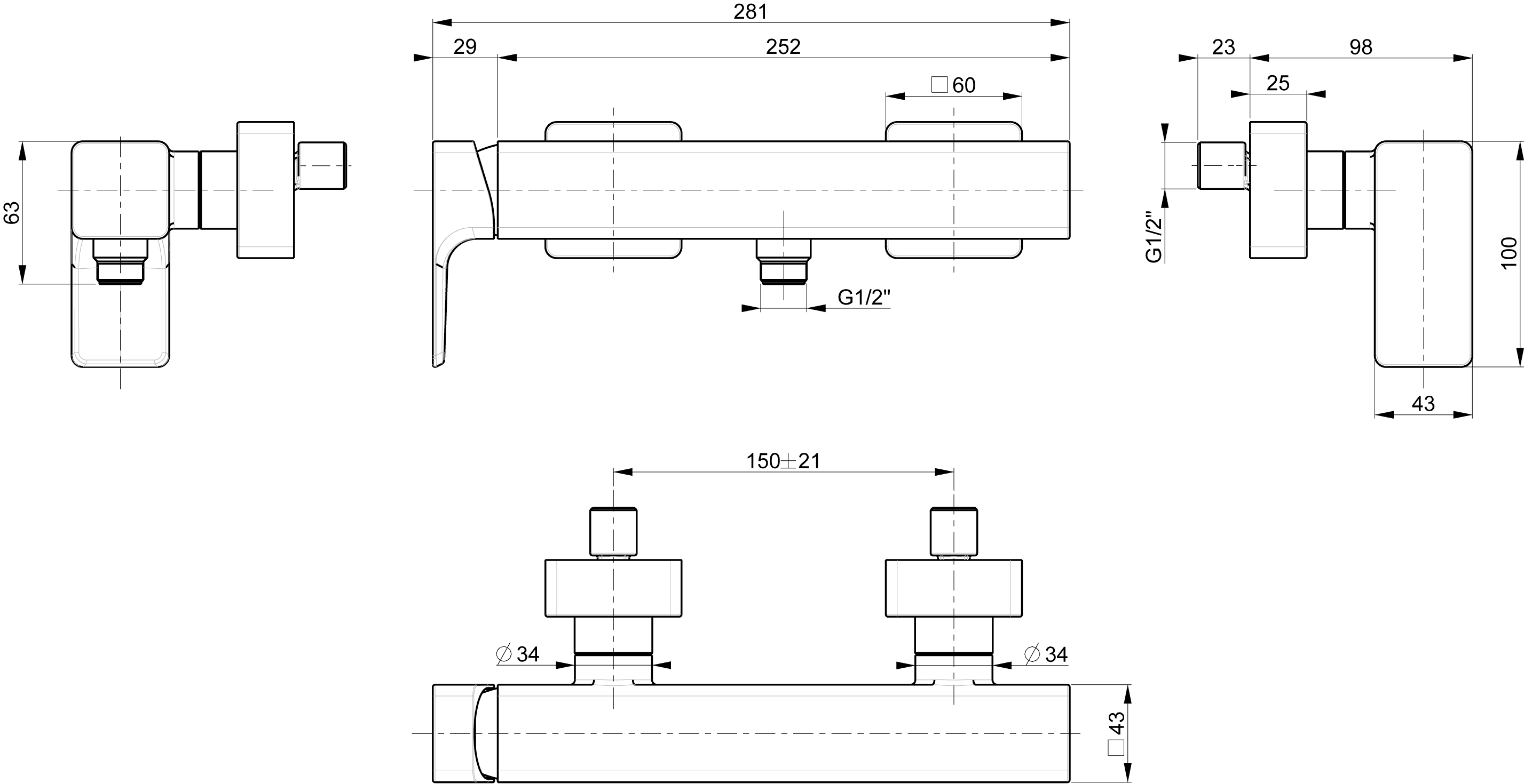Eengreeps douchekraan Subway 3.0 Matt Black Villeroy & Boch