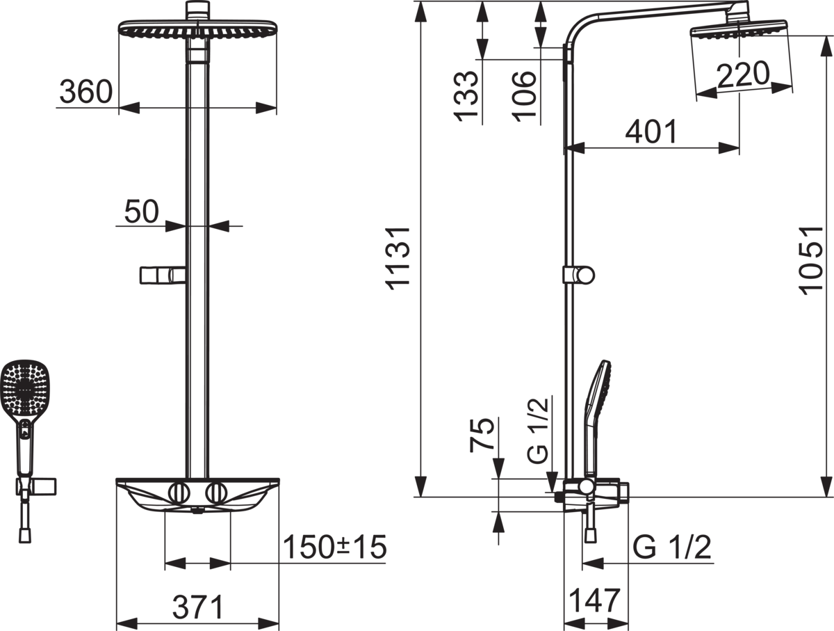 Emotion thermostatisch douchesyst. chroom/wit m.losse handd. HANSA