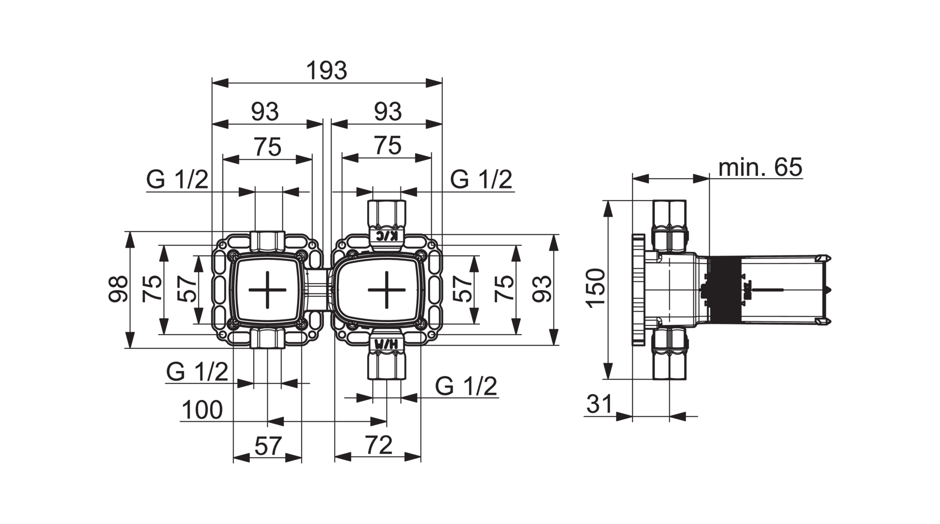 Matrix wand inbouwdeel thermostaat chroom HANSA
