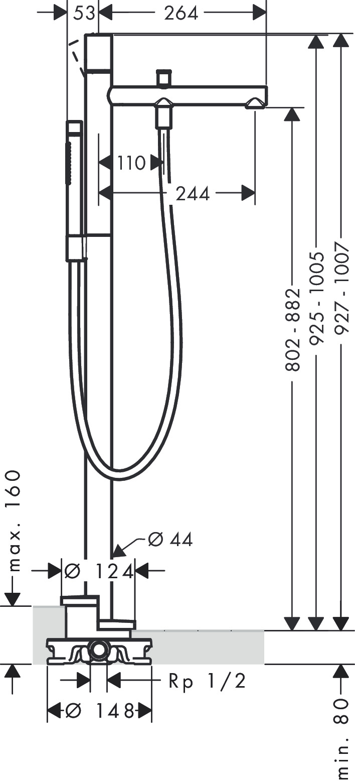AXOR Uno afboudeel vloergemonteerde badmengkraan met Zero-greep chroom hansgrohe