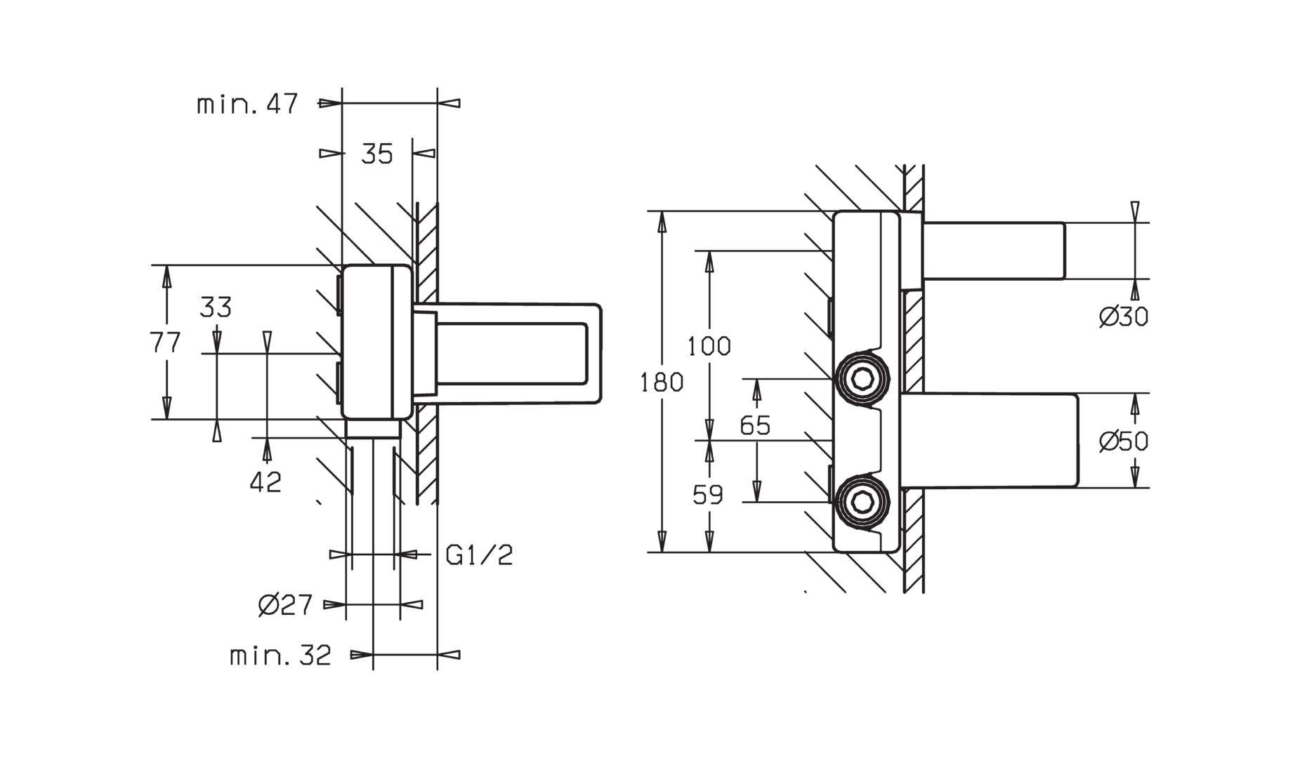 Vario inbouwdeel voor 2 gats-wandmengkranen HANSA