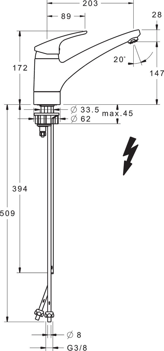 Mix keukenmengkraan 150gr. draaib uitl sprong 203mm 8mm-3/8 HANSA