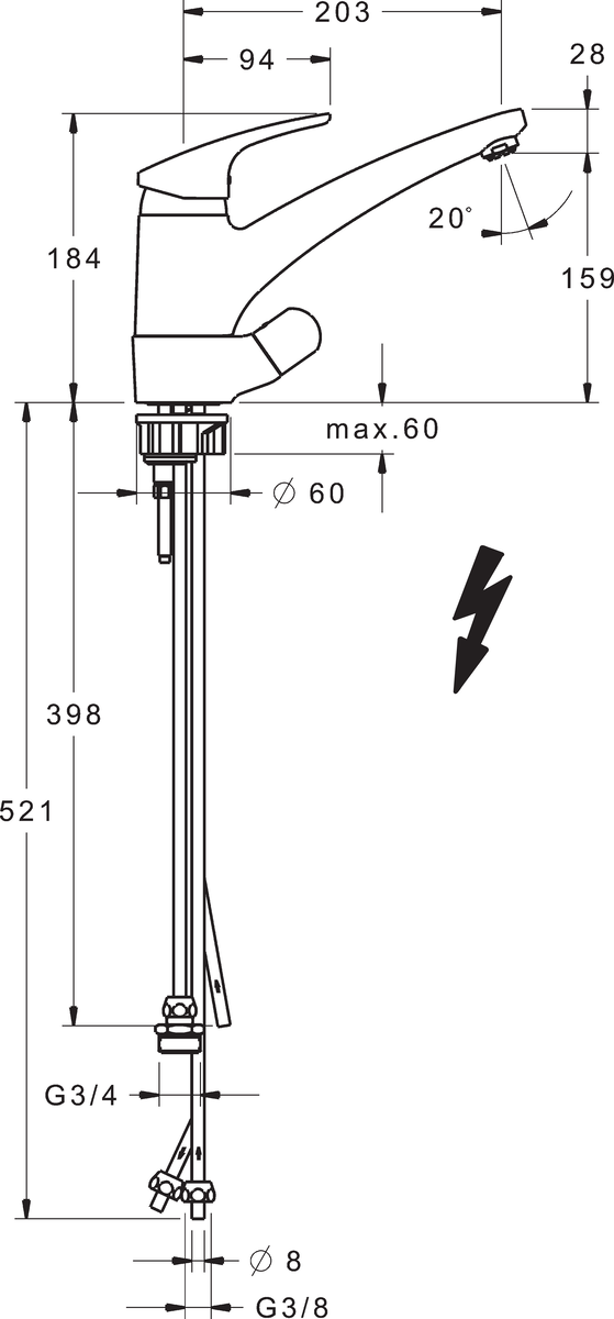 - Terugstroombeveiliging conform EN 1717: AA, vrije luchtopening