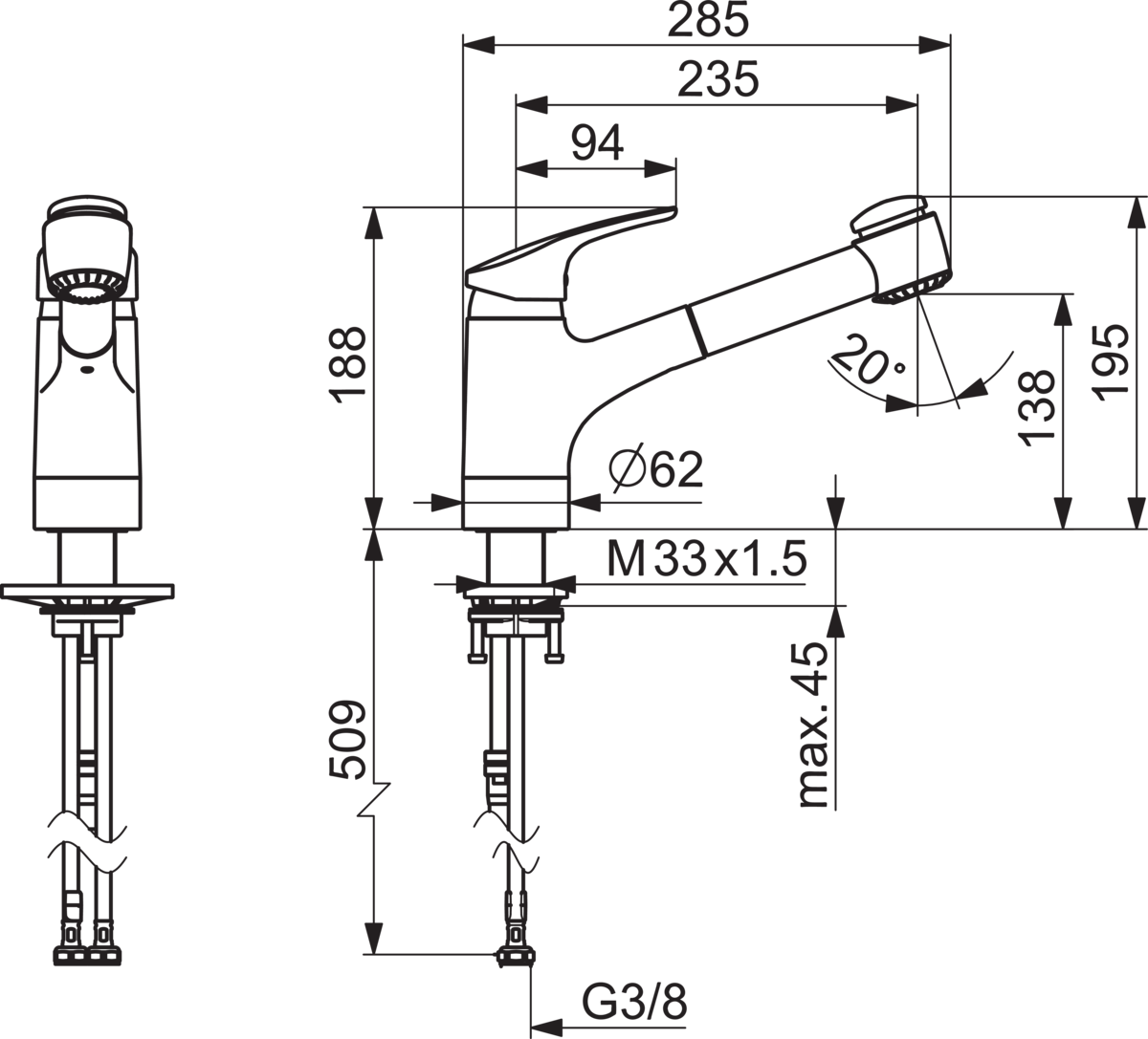 - Uittrekbare zijdouche: Nee