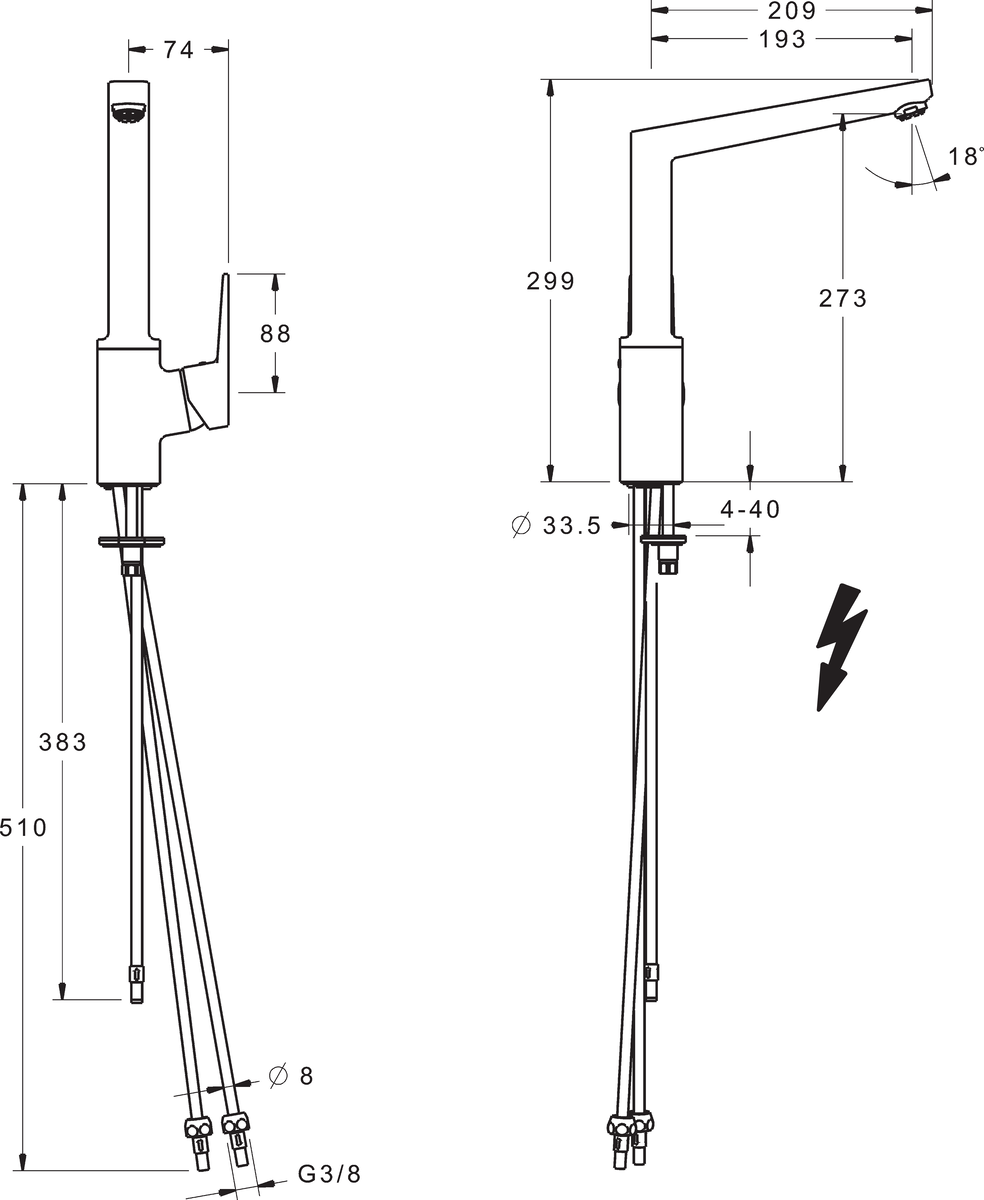 - Maat aansluiting aanvoer: 3/8" (10)