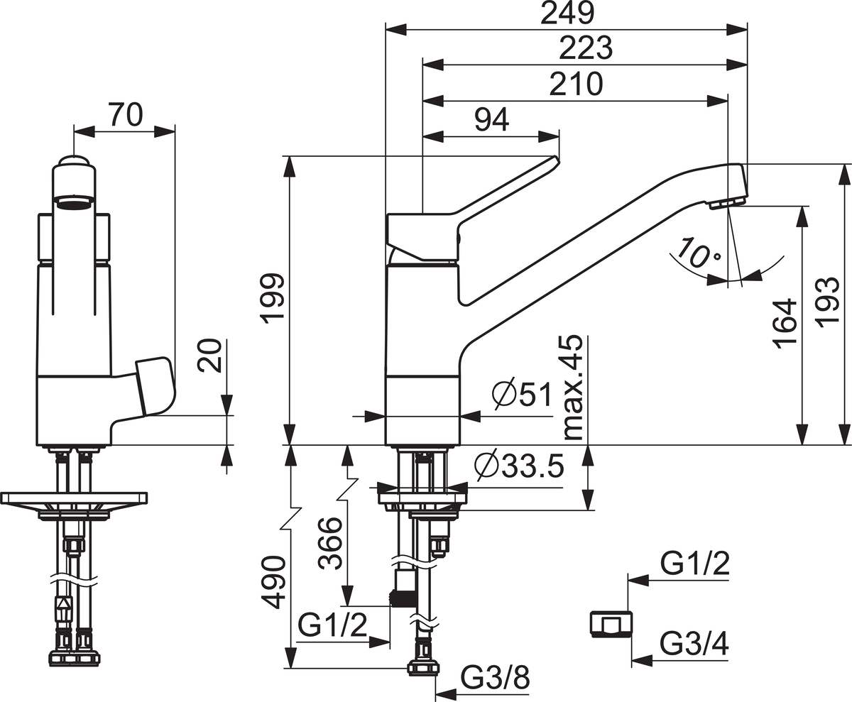 - Maat aansluiting aanvoer: 3/8" (10)