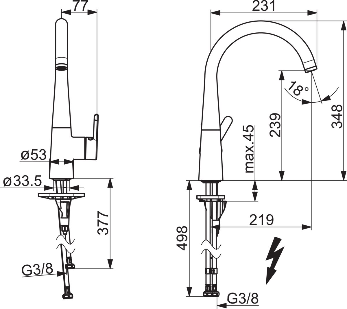 - Maat aansluiting aanvoer: 3/8" (10)
