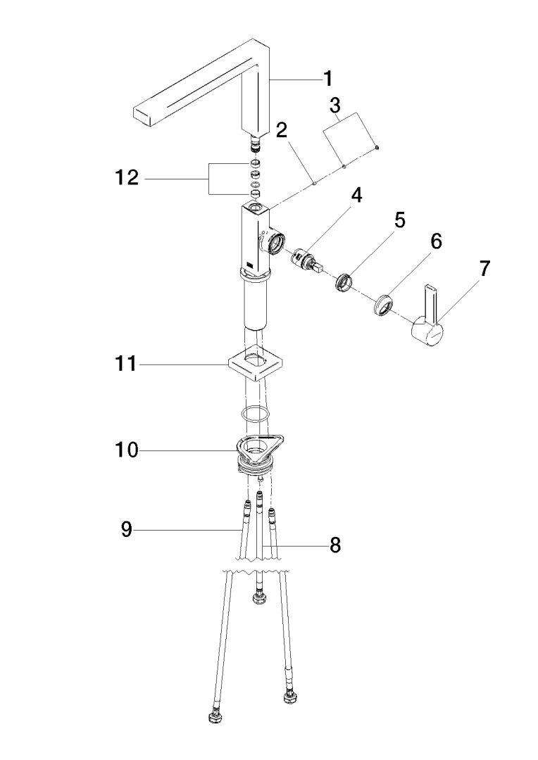 - Benodigde vrije ruimte achter kraan: 10 mm