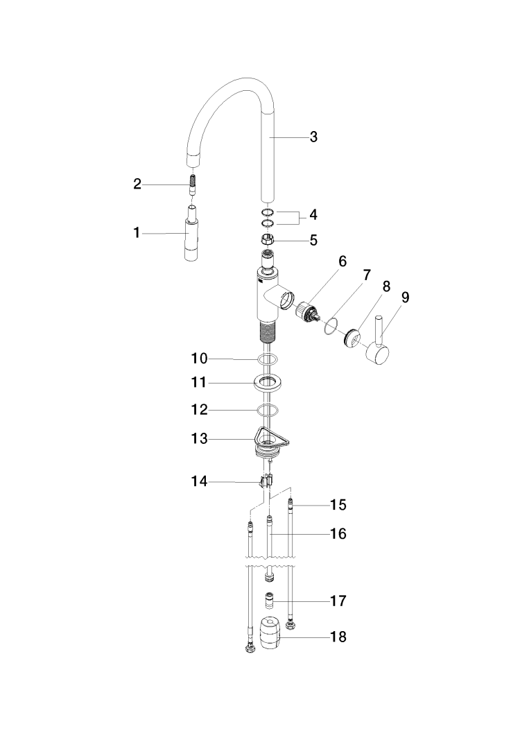 - Benodigde vrije ruimte achter kraan: 10 mm