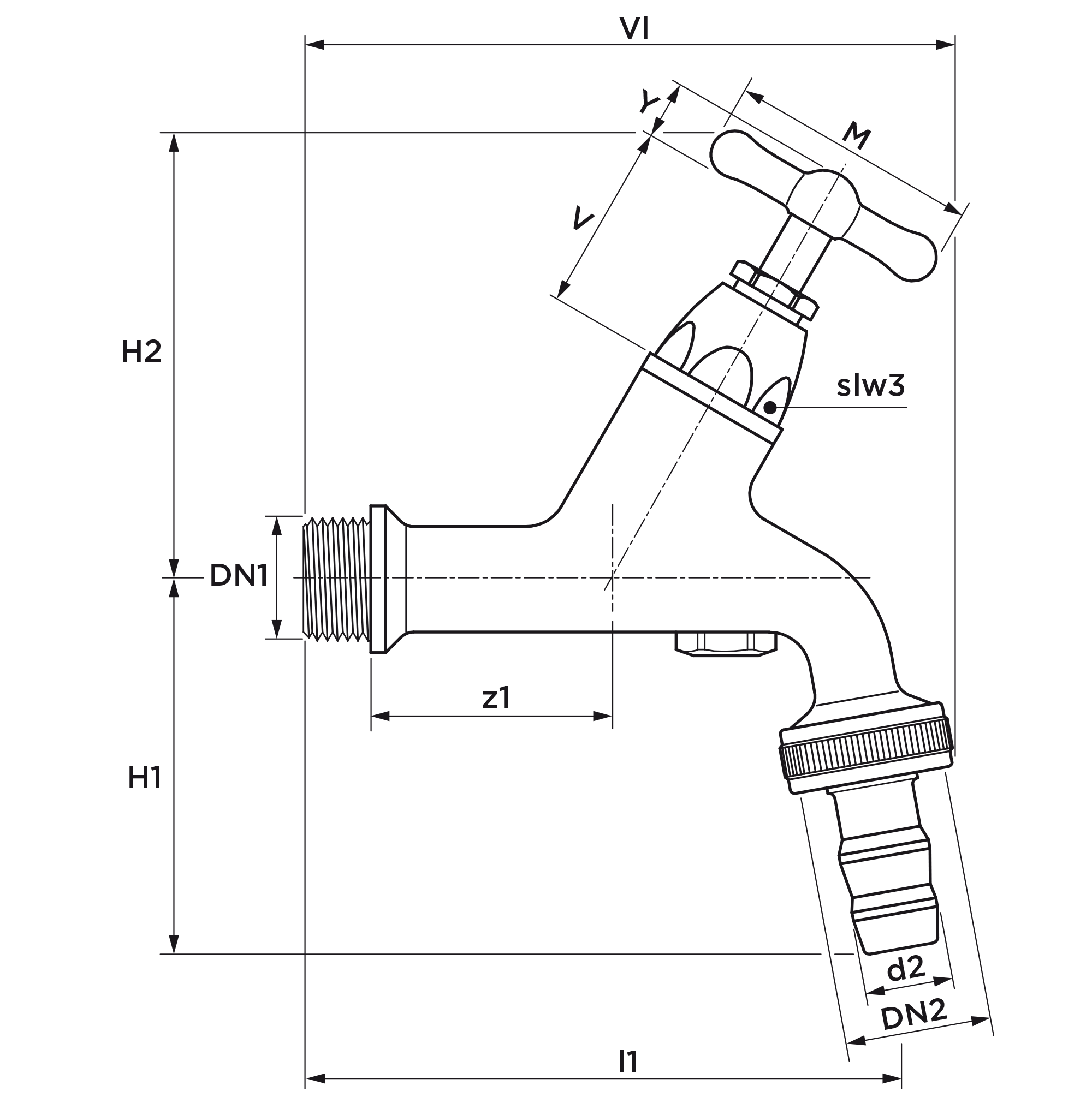 Beluchterkraan + slangwartel + kruk 1/2"bn. k VSH