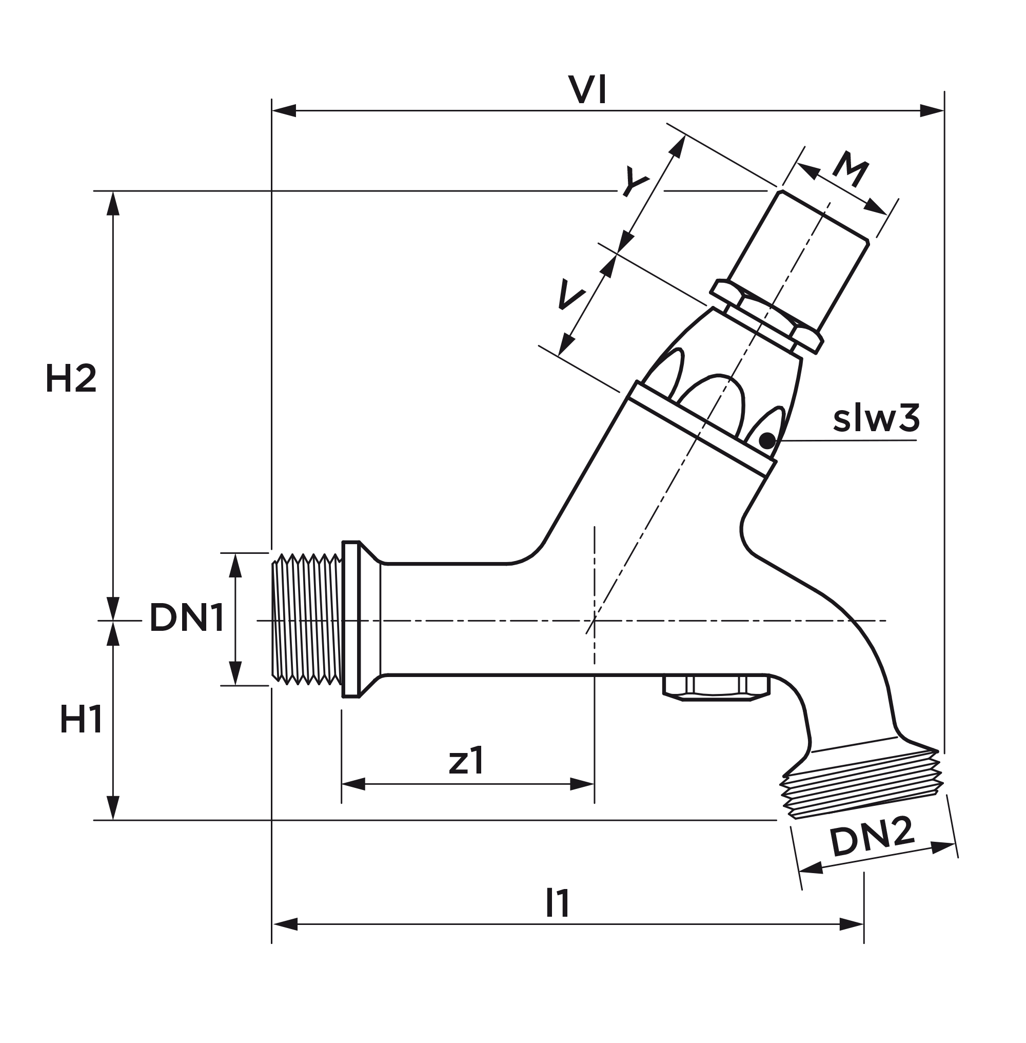 Tapkraan 1/2" chroom B3521 m. sleutelbediend/keerklep/belucht (excl. sleutel) VSH