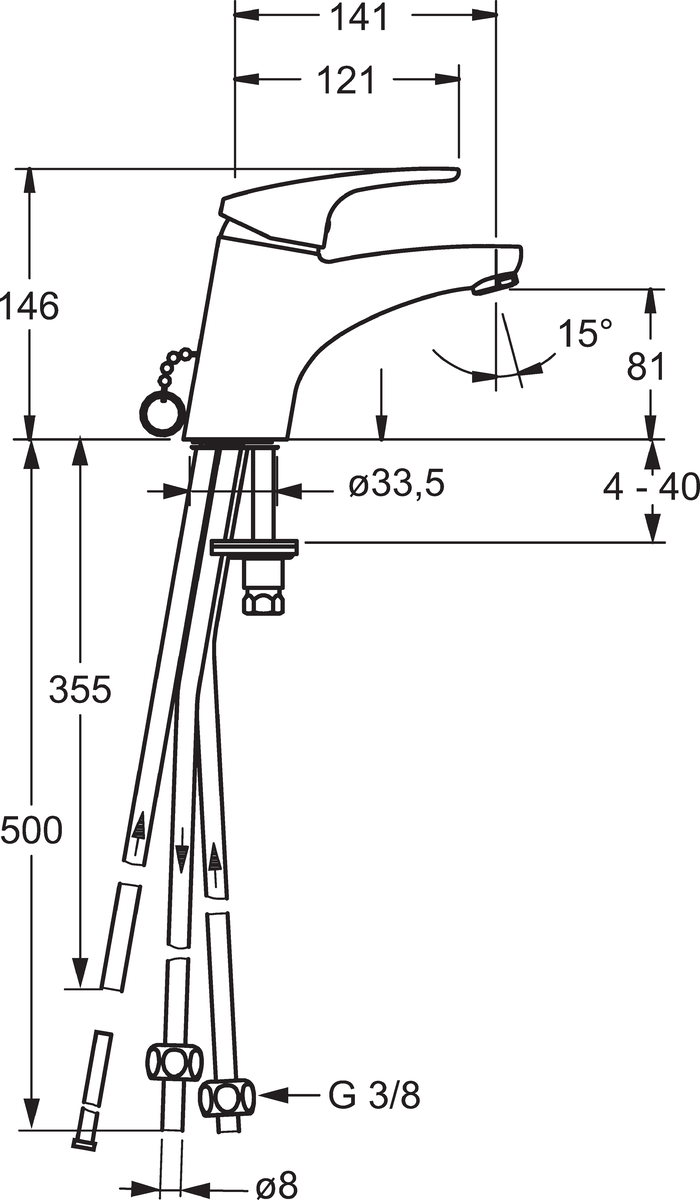 Mix wastafelmengkraan vaste uitloop m.ketting sprong 141mm HANSA