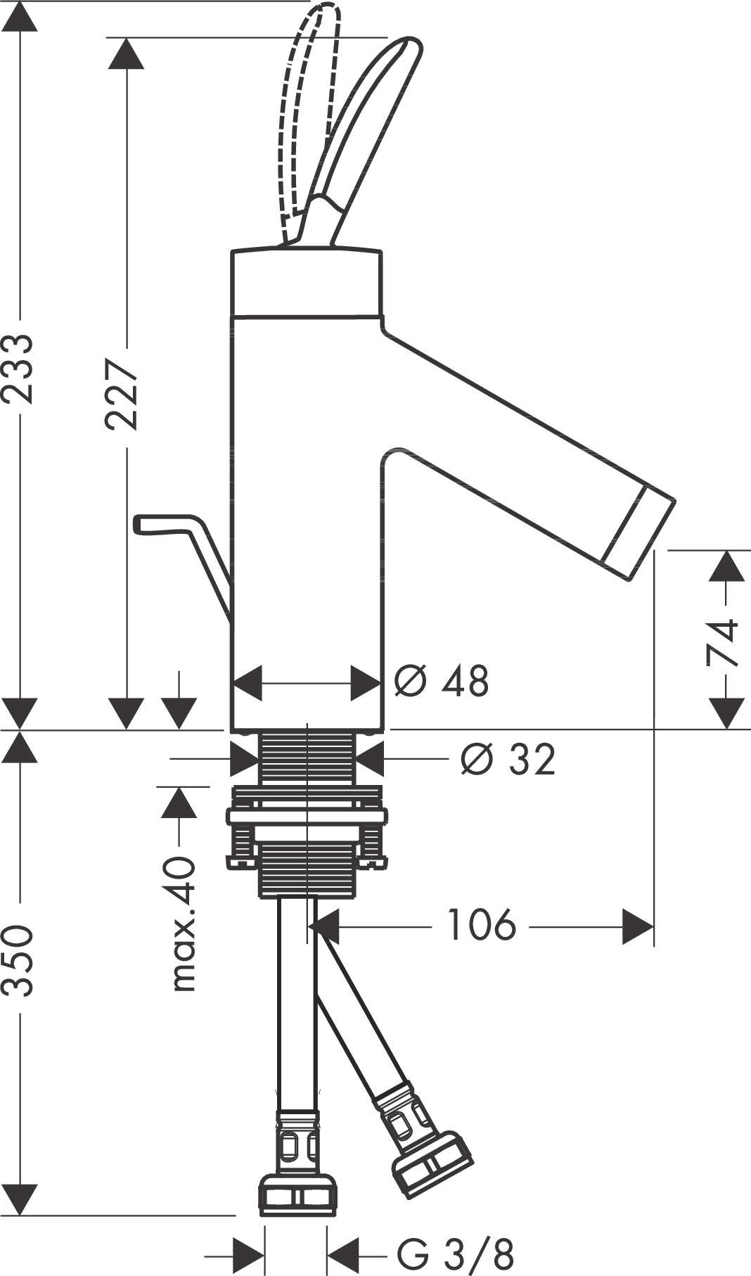• Type afvoeraansluiting: Pop-up plug met verticale hefboom